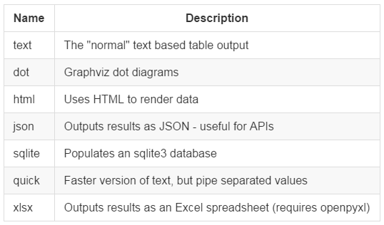 The reason for this is because they used the previous version rendering. The nice part is if they change the code to add JSON output, the unified output would also support SQLite and XLS or any other rendering format provided by the framework. Thanks to the Fireye guys for being good sports!