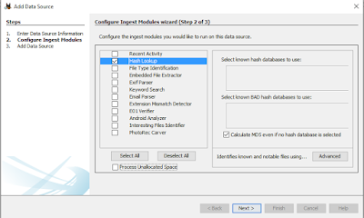 HashDump was built as a proof of concept that requires the Hash Lookup Ingest Module be run prior to calculate the MD5 hashes.