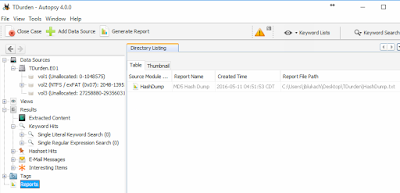 The python user interface closes once the database export is completed. HashDump.py resumes control adding the HashDump.txt file in the base of the case folder to the report view.